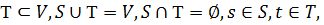 вершин V на два подмножества S и Т, так что