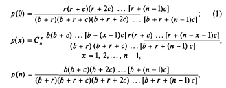 {++;= p* (n - 1 - x)*(b + (x - 1)*c) / (x*(r + (n - x)*c));= r - p;