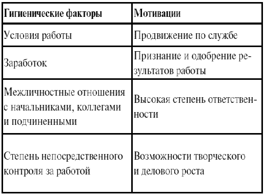 Однако у Герцберга гигиенический фактор как таковой не оказывает особого влияния на поведение человека, а тем более на удовлетворение потребности.