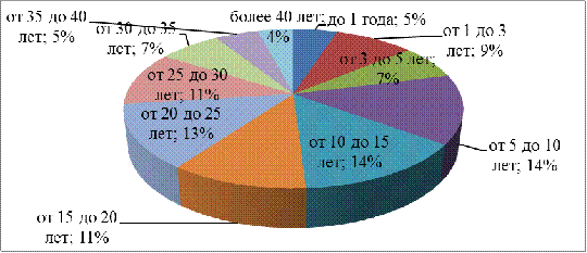 более 5 лет - 84%, что также говорит о том, что коллектив достаточно опытный,