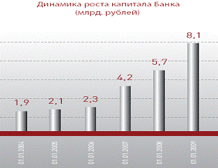 Собственный капитал Банка увеличился за год на 42,4% (2 415 млн. рублей), на 1 января 2013 года он составил 8 105 млн. рублей (на 1 января 2012 года 5 690 млн. рублей).