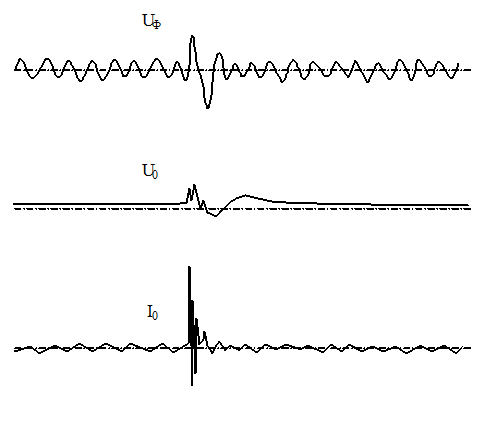 Рисунок 2.6 - Осциллограммы переходного процесса при замыкании на землю в сети с изолированной нейтралью