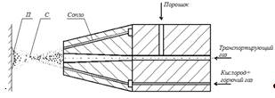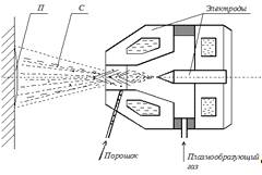 Рисунок 1.13- Схема пламенного напыления. П - покрытие; С - струя