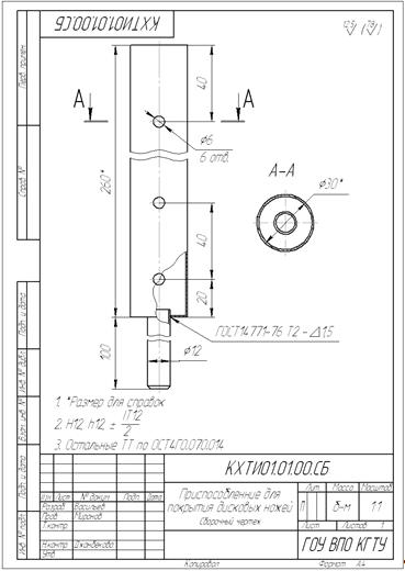 В данной работе для определения стойкости в производственных условиях покрытие наносили на дисковый нож от мездрильной машины ДМ-3М. Дисковые ножи в России изготавливает ООО "Самара ЗИМ-Инструмент" из стали 9ХФ.