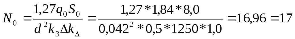 Вычисляем количество шпуров на забой по формуле: