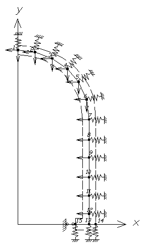 Рис. 3. Схема к статическому расчету обделки на ЭВМ.
