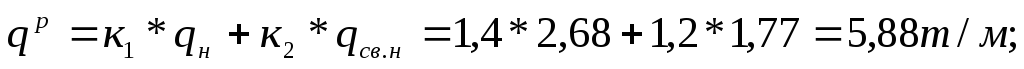 Определим расчётные нагрузки посредством умножения нормативных на коэффициенты перегрузки: