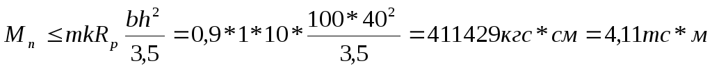 Rр - расчетное сопротивление бетона растяжению ( Rр=10кгс/см2 ).