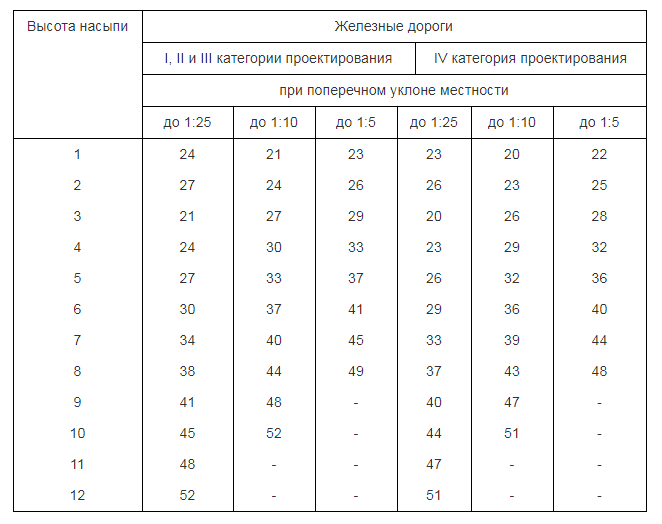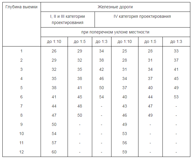 Ширину отвода определяем по нормативным данным из ОСН 3.02.01-97 в зависимости от того насыпь у нас или выемка.