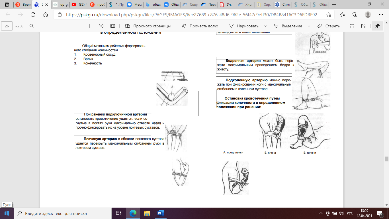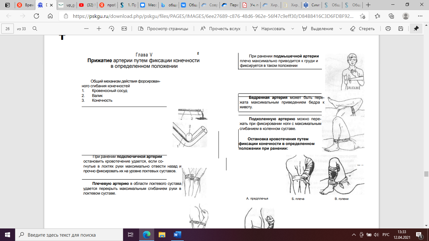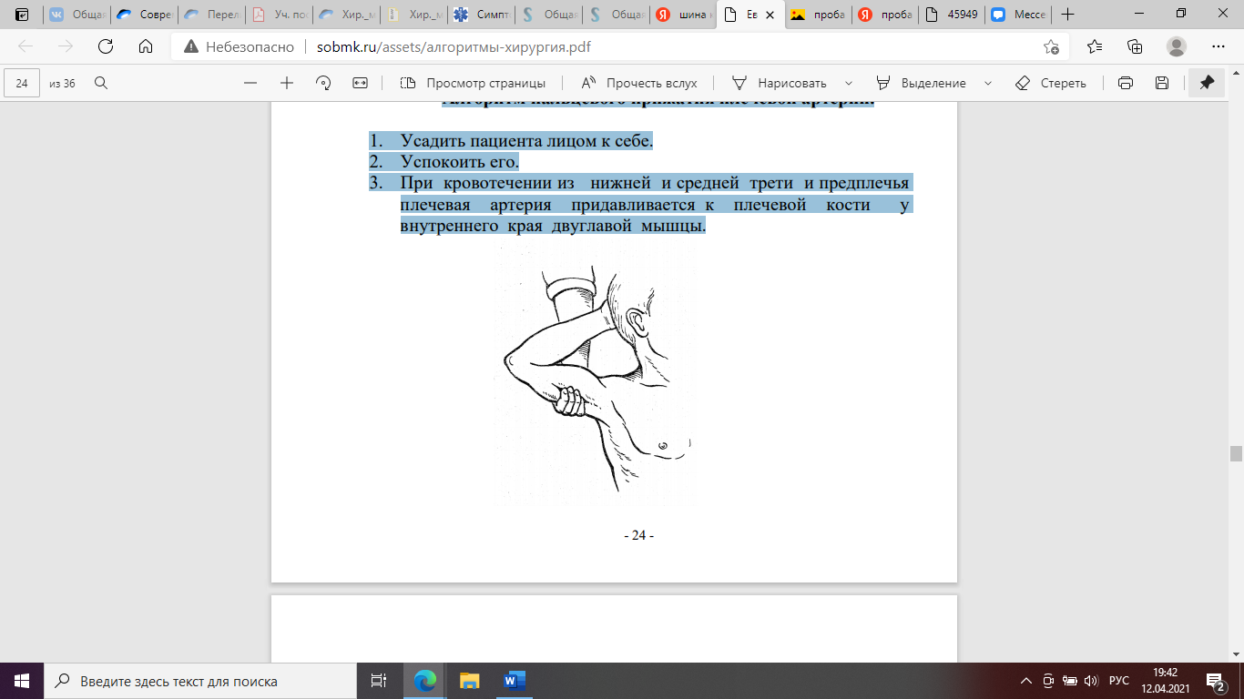 3. При кровотечении из нижней и средней трети и предплечья плечевая артерия придавливается к плечевой кости у внутреннего края двуглавой мышцы.
