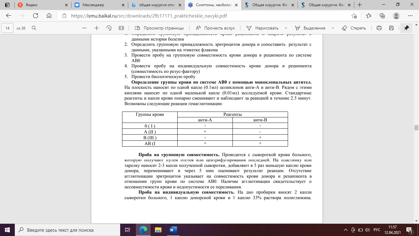 1 Агглютинация отсутствует как с Цоликлоном анти-А, так и с Цоликлоном анти-В – исследуемая кровь принадлежит к группе О(I).