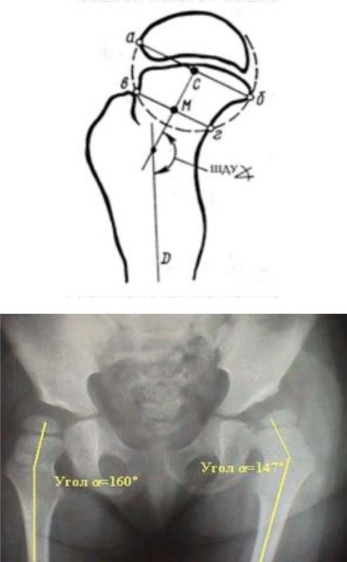 При врожденном вывихе бедра, как правило, ШДУ вальгизизирован и составляет более 135 градусов.