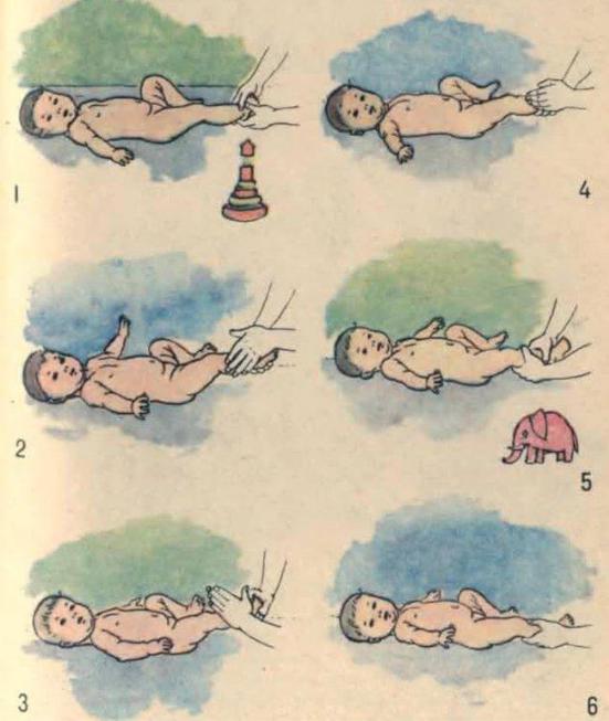 упражнениями занимаются родители). До года ребенок должен получить 3-4