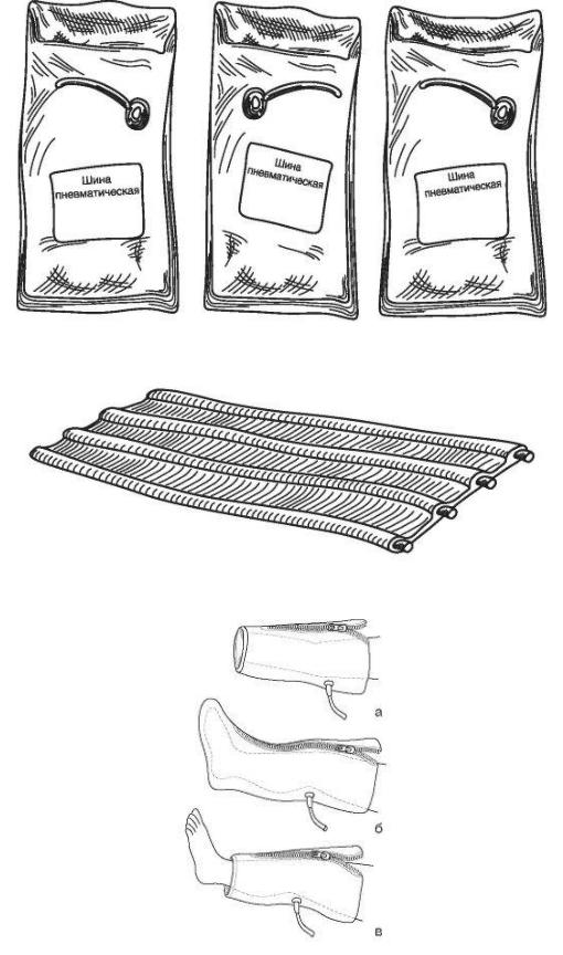 Рис. 10. Шины медицинские пневматические: а - для кисти и предплечья; б - для стопы и голени; в - для коленного сустава