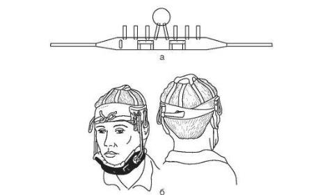 Состоит из двух основных деталей: жесткой подбородочной пращи,