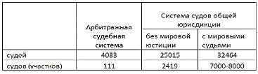 Таблица 2. Количество судов и судей в сегментах судебной системы России.