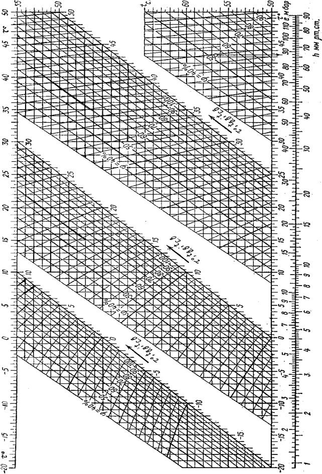 ¬Якщо на t-t діаграмі (рис. 1) немає шкали температур на якій знаходяться обидва значення – tН та tСК, то необхідно скористатися допоміжноюt-t діаграмою вологого повітря (рис. 3).