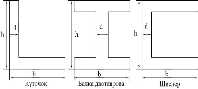 У роботі розглядаються окремі види сортового профілю(куточок, двотавр, швелер). Для формування зв'язування основне значення мають наступні характеристики профілю: ширина (b), висота (h), товщина (d), зовнішній вигляд