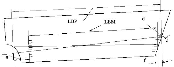 LBM – відстань між марками поглиблення, м. LBM = LBP – (f + a),