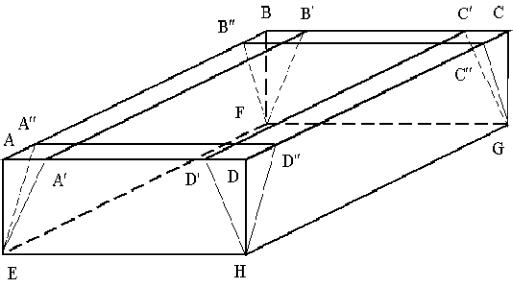 При утворенні другої призми( VпрB ) сегменти A¢A²AE, B¢B²BF, C¢C²CG, D¢D²DH відсутні, тому що вони використовувалися для одержання першої при-