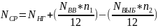 где NНГ – количество станков на начало года, NВВ – количество вновь вводимых станков, NВЫБ – количество выбывших станков, n1 – количество полных месяцев работы вновь вводимых станков, n2 –количество полных месяцев отсутствия выбывших станков
