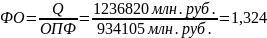 Т.е. на 1 рубль среднегодовой стоимости ОПФ приходится 1,324 руб. товарной продукции.