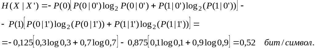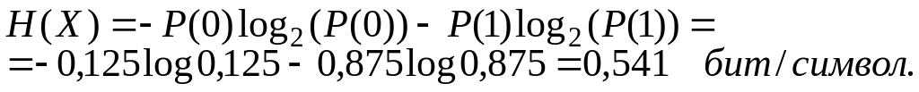 Для источника без памяти при тех же безусловных вероятностях передачи символов