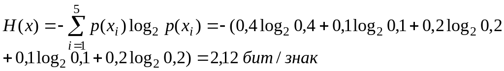 источника сообщений H(x) = 4.36 бит/знак.