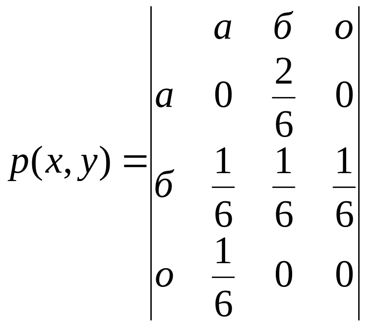 Задана взаимная вероятность появления символов