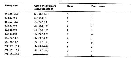 Після отримання аналогічних повідомлень від маршрутизаторів М2 і М3 маршрутизатор M1 нарощує кожне отримане поле метрики на одиницю і запам'ятовує, через який порт і від якого маршрутизатора отримана нова інформація (адреса цього маршрутизатора буде адресою наступного маршрутизатора, якщо цей запис буде внесено в таблицю маршрутизації). Потім маршрутизатор починає порівнювати нову інформацію з тією, яка зберігається в його таблиці маршрутизації (табл. 3).