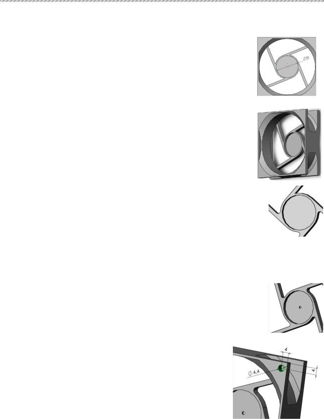 64.Щоб підвести дроти до двигуна, в циліндричній основі хрестовини необхідно сформувати відповідний виріз. Для цього скоректуємо місце сполучення спиці з основою, а потім виріжемо в нім прямокутний отвір, узгоджений з канавкою.