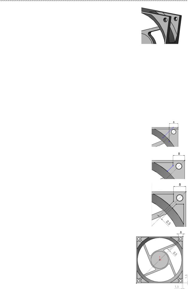 59.За допомогою об'єктів ескізаLine (Лінія) і Centerpoint Arc (Центр дуги), і інструмента ескізаSketch Trim (Відітнути) намалюйте фігуру, що примикає до спиці відповідно до малюнка. Закрийте ескіз.