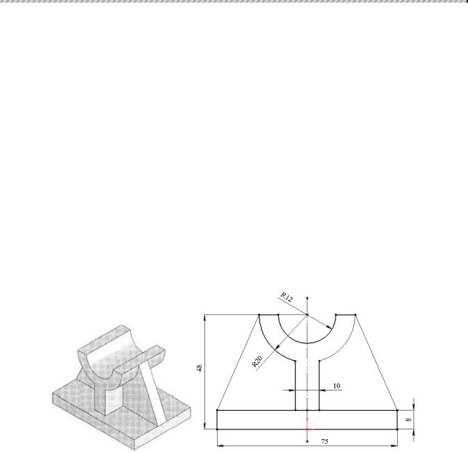 Необхідно побудувати ескіз і створити, використовуючидеталь моделювання методом виділення контура. Розміри моделі показані на малюнку.