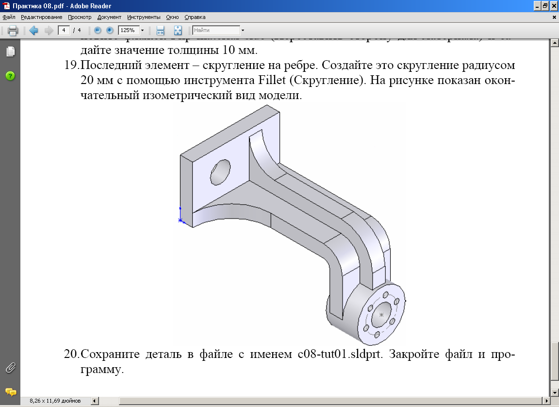 Збережіть деталь у файлі з|із| ім'ям c08-tut01|.sldprt. Закрийте|зачиняйте| файл і програму.