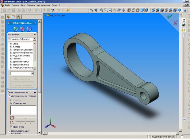 Назначение материала в SolidWorks