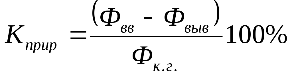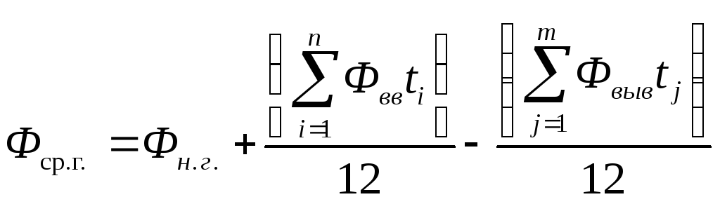 Где Фн.г. - стоимость ОсФ на начало года, Фвв - стоимость ОсФ вводимых в действие в течении года, Фвыв - стоимость ОсФ выводимых (ликвидируемых) в течении года.