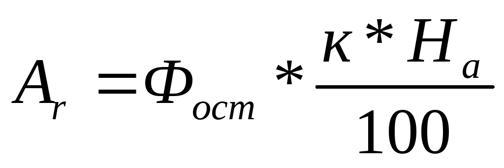 где Аr – ежегодная сумма амортизационных отчислений; Фп – первоначальная стоимость ОсФ предприятия; На – норма амортизационных отчислений.
