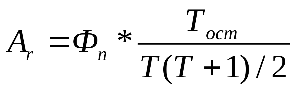 где Тост – количество лет, оставшихся до окончания срока полезного использования ОсФ; Т – срок полезного использования.
