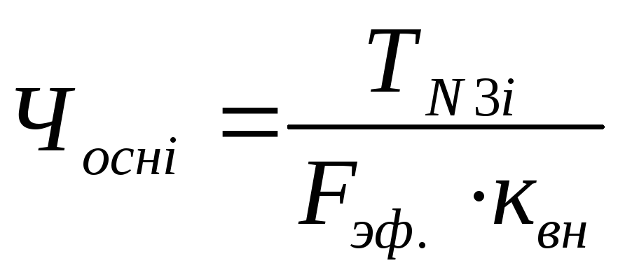 где ТNЗi - трудоемкость изготовления производственной программы, час.; Fэф – эффективный фонд времени рабочего, час.; квн – коэффициент выполнения нормы; i – вид соответствующих работ.