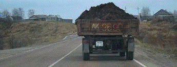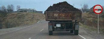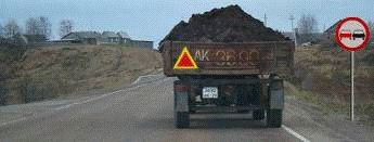 А вот теперь другое дело - на заднем борту опознавательный знак "Тихоходное транспортное средство". И, следовательно, с какой бы скоростью оно ни "летело", его можно обгонять и в зоне действия знака 3.20 "Обгон запрещён".