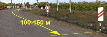 Но если стоят знаки "Приближение к железнодорожному переезду", тогда у водителей есть вполне чёткий ориентир. Второй по ходу знак (с двумя красными наклонными полосами) всегда стоит на расстоянии минимум 100 метров до переезда.