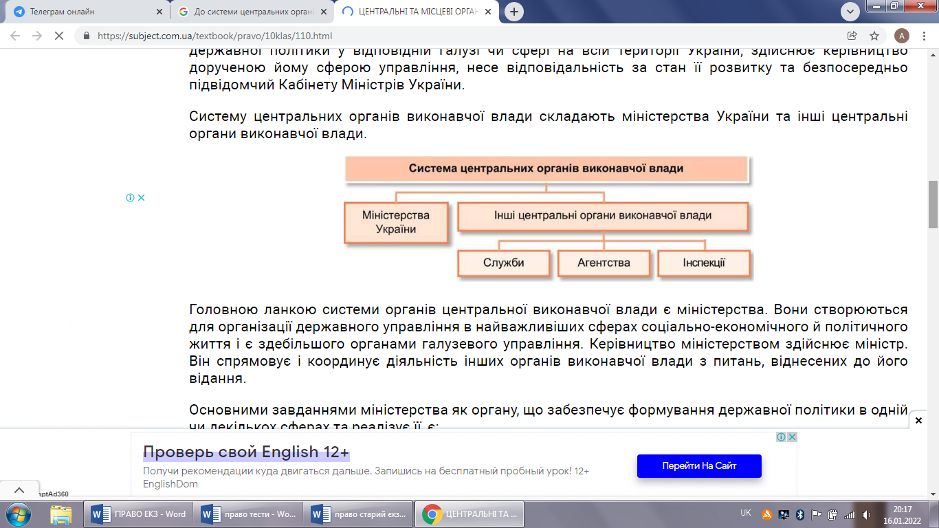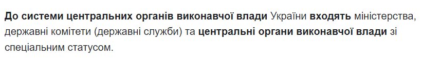 До системи центральних органів виконавчої влади входить: