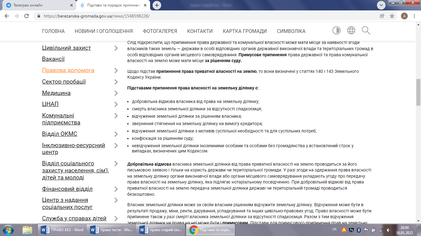 Підставою припинення права власності на земельну ділянку є: