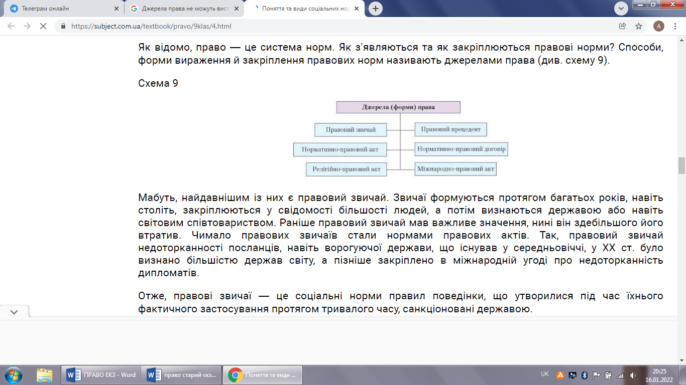 Джерела права не можуть виступати у формі: