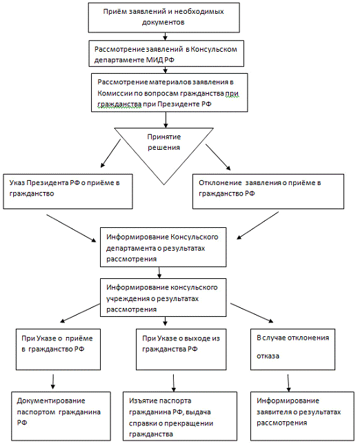 Схема приёмов заявлений и документов необходимых для гражданства