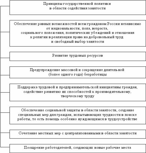В рамках внедрения социально-правовых и государственных мер по снижению уровня безработицы в стране, правительство РФ должно законодательно регулировать и неизменно реализовывать осуществление следующих принципов занятости: