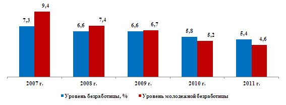 безработицы с 12,1% в 2006 году до 4,6% - в 2011, или на 1,4 процентных пункта