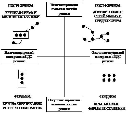 субконтрактников и 2) сети малых м средних предприятий - для постфордизма