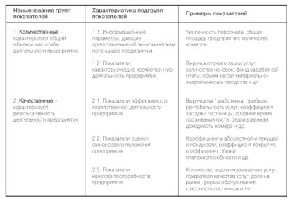 Контроль за достижением поставленных целей предусматривает сравнение фактически достигнутых и планируемых показателей финансово-экономической деятельности предприятия. Показатели деятельности гостиничного предприятия - это комплекс взаимосвязанных экономических и информационных параметров, которые отражают цели и задачи плана и различные стороны деятельности.