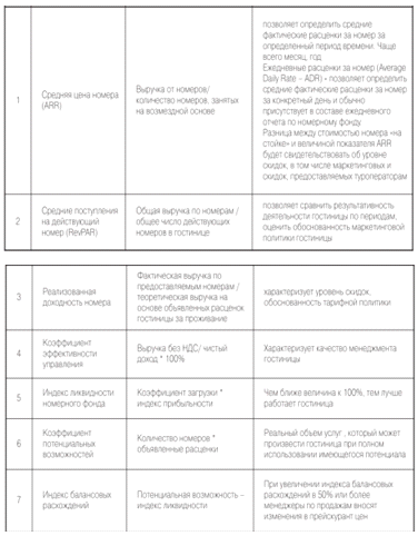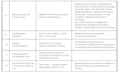. Оценку финансово-экономического положения гостиничного предприятия и в первую очередь его экономического потенциала. В динамике за ряд лет рассматриваются объемы реализации услуг, цены, степень загрузки номерного фонда, количество видов и объемы дополнительных услуг, обеспечение безопасности проживания гостей, степень развитости инфраструктуры предприятия (информационного обслуживания, инженерных служб, складского хозяйства, средств транспорта), обеспеченность материально-техническими ресурсами, показатели общих доходов и расходов предприятия, обеспеченности финансовыми ресурсами, показатели эффективности работы предприятия (прибыли до и после выплаты налогов, проценты по кредитам, отчисления в фонды предприятия, рентабельность) и другое.